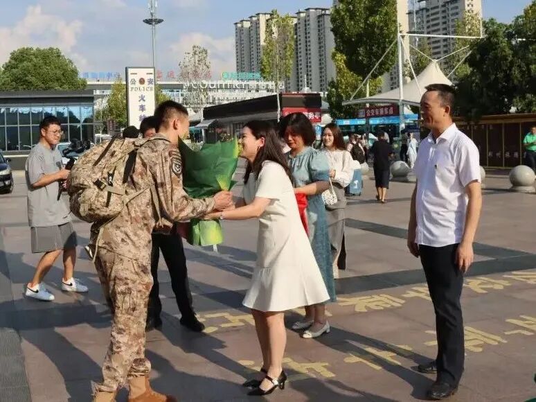9月4日下午,張田田同志載譽歸來。荊州市退役軍人事務局副局長李荊鳳,荊州市政府國資委黨委委員、副主任童克忠、黨委委員、副主任嚴珩,湖北華夏水利黨委書記、董事長張澤武一行來到荊州火車站熱情迎接。